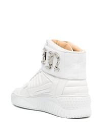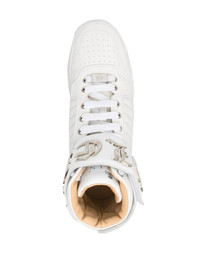 logo high-top sneakers white calf leather flat rubber sole gold-tone logo lettering gold-tone logo plaque front lace-up fastening round toe perforated toebox ankle-length branded insole Made in Italy Composition Leather 100% SIZE & FIT Measurement HEEL 1.18 in(3 cm) HEIGHT 4.33 in(11 cm) Sole height 0.98 in(2.5 cm)