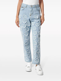 logo-patch cotton tapered jeans Highlights - Light blue - Cotton - Logo patch to the rear - Mini logo tag - Heart motif - Belt loops - Concealed fly and button fastening - Classic five pockets - Tapered leg Imported Composition Cotton 100%