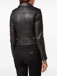 logo-patch leather biker jacket