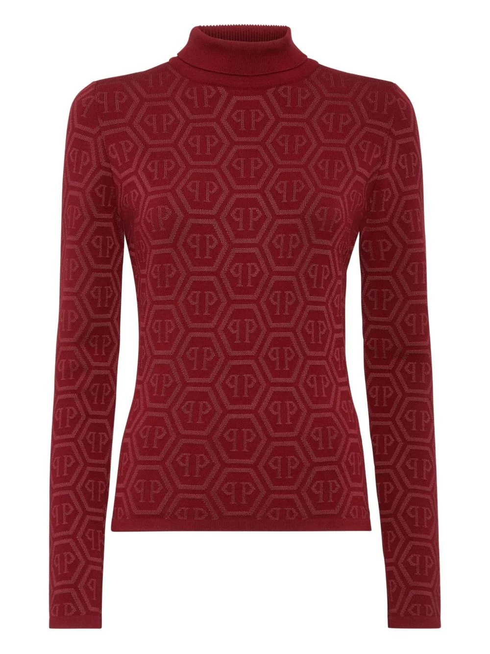 logo-pattern turtleneck sweater Highlights - Burgundy - Turtleneck - Long sleeves - Logo pattern Made In Italy Composition Fabric 100% Washing instructions Read Manufacturer Guidelines