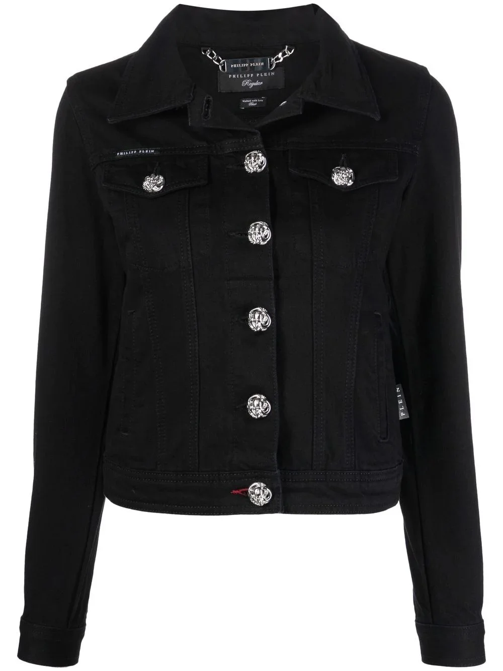 logo-plaque denim jacket Highlights - Black - Cotton - Logo plaque - Logo patch to the front - Classic collar - Front button fastening - Long sleeves - Two chest flap pockets - Two side inset pockets Imported Composition Lining: Polyester 65%, Cotton 35% Outer: Cotton 100% SIZE & FIT Model measurements Height 5 ft 9 in(1.75 m) Bust/Chest 32.67 in(83 cm) Hips 36.22 in(92 cm) Waist 24.8 in(63 cm) FittingInformation This piece fits true to size. We recommend you get your regular size Cut for a slim fit Made with a mid-weight non-stretch fabric Washing instructions Hand Wash