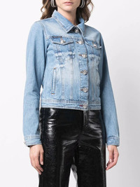 logo-plaque denim jacket faded blue cotton faded effect logo plaque logo patch at the chest classic collar front button fastening long sleeves two chest flap pockets two side inset pockets Imported Composition Lining: Polyester 65%, Cotton 35% Outer: Cotton 100% SIZE & FIT Model measurements Height 5 ft 9 in(1.75 m) Bust/Chest 32.67 in(83 cm) Hips 36.22 in(92 cm) Waist 24.8 in(63 cm) Washing instructions Hand Wash