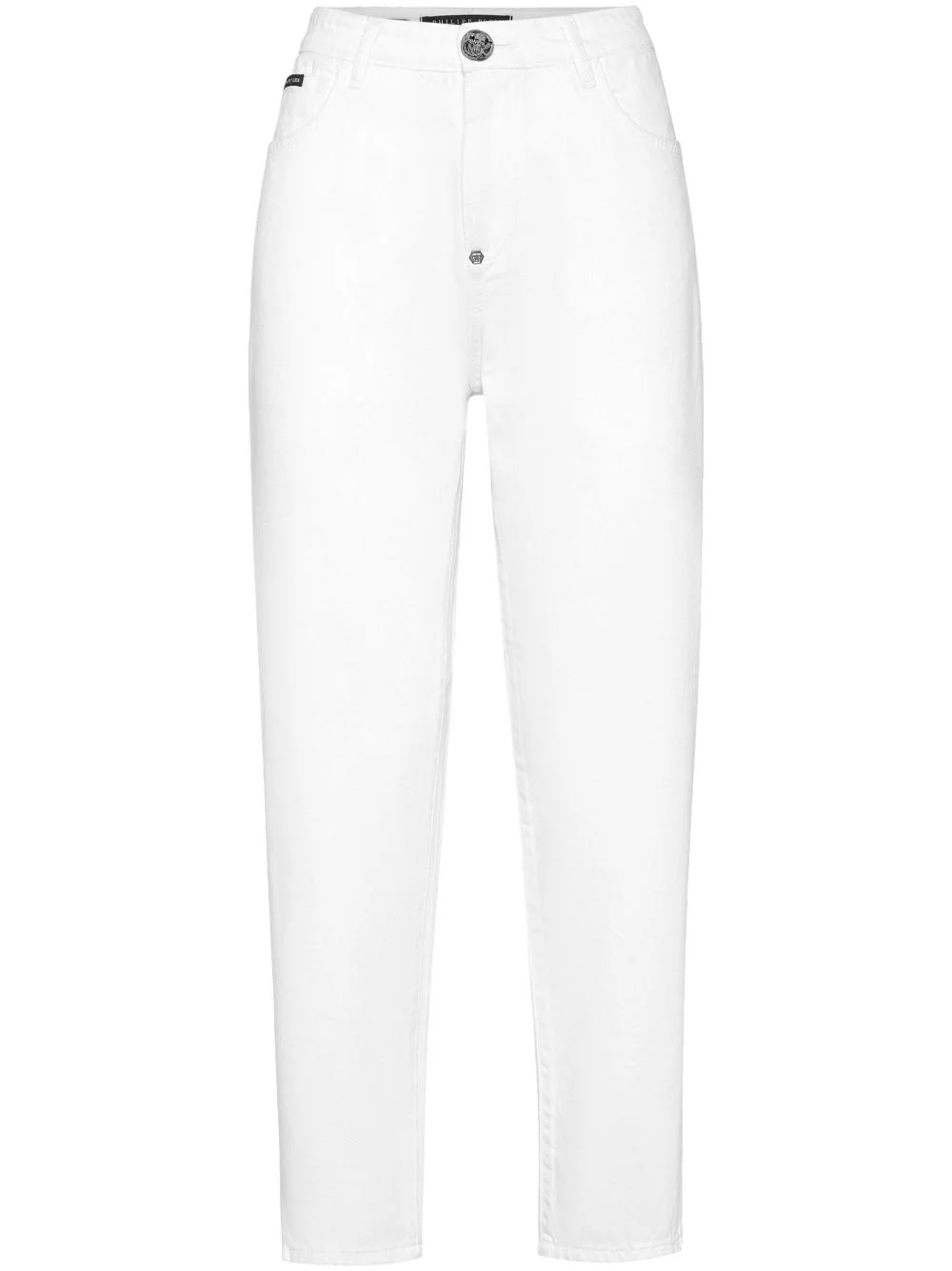 logo-plaque jeans Highlights - White - Concealed fly and button fastening - Belt loops - Classic five pockets - Cropped Imported Composition Outer: Cotton 100%, Polyester 100%, Metal 100% Lining: Polyester 65%, Cotton 35% Washing instructions Read Manufacturer Guidelines