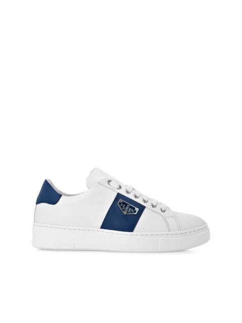logo-plaque leather sneakers Highlights - White/black - Calf leather - Panelled design - Logo plaque - Round toe - Front lace-up fastening - Contrasting heel counter - Branded leather insole - Flat rubber sole Made in Italy Composition Leather 100%