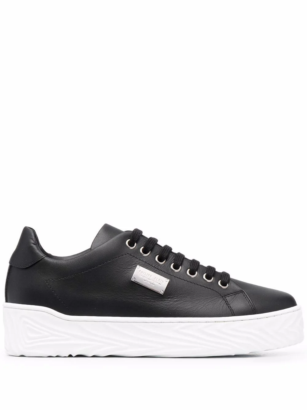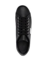 logo-plaque low-top sneakers jet-black leather front lace-up fastening round toe logo plaque flat rubber sole Made in Italy Composition Leather 100% SIZE & FIT Measurement HEEL 1.57 in(4 cm) Sole height 1.18 in(3 cm)
