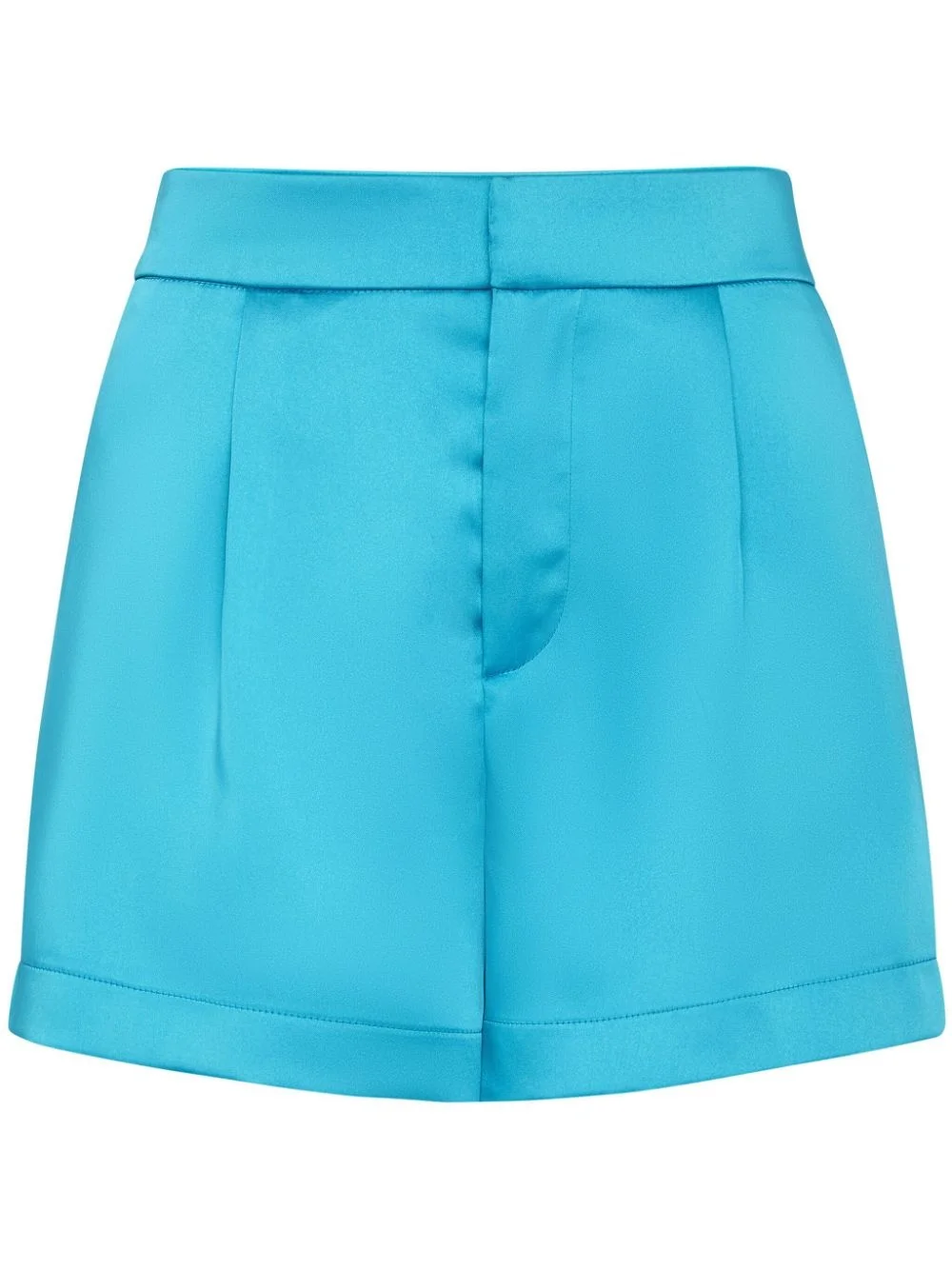 logo-plaque satin shorts Highlights - Turquoise blue-green - Satin weave - Silver-tone logo plaque - Concealed front fastening - High-waisted - Thigh-length - Two side inset pockets - Two rear welt pockets Made in Italy Composition Polyester 96%, Spandex/Elastane 4%