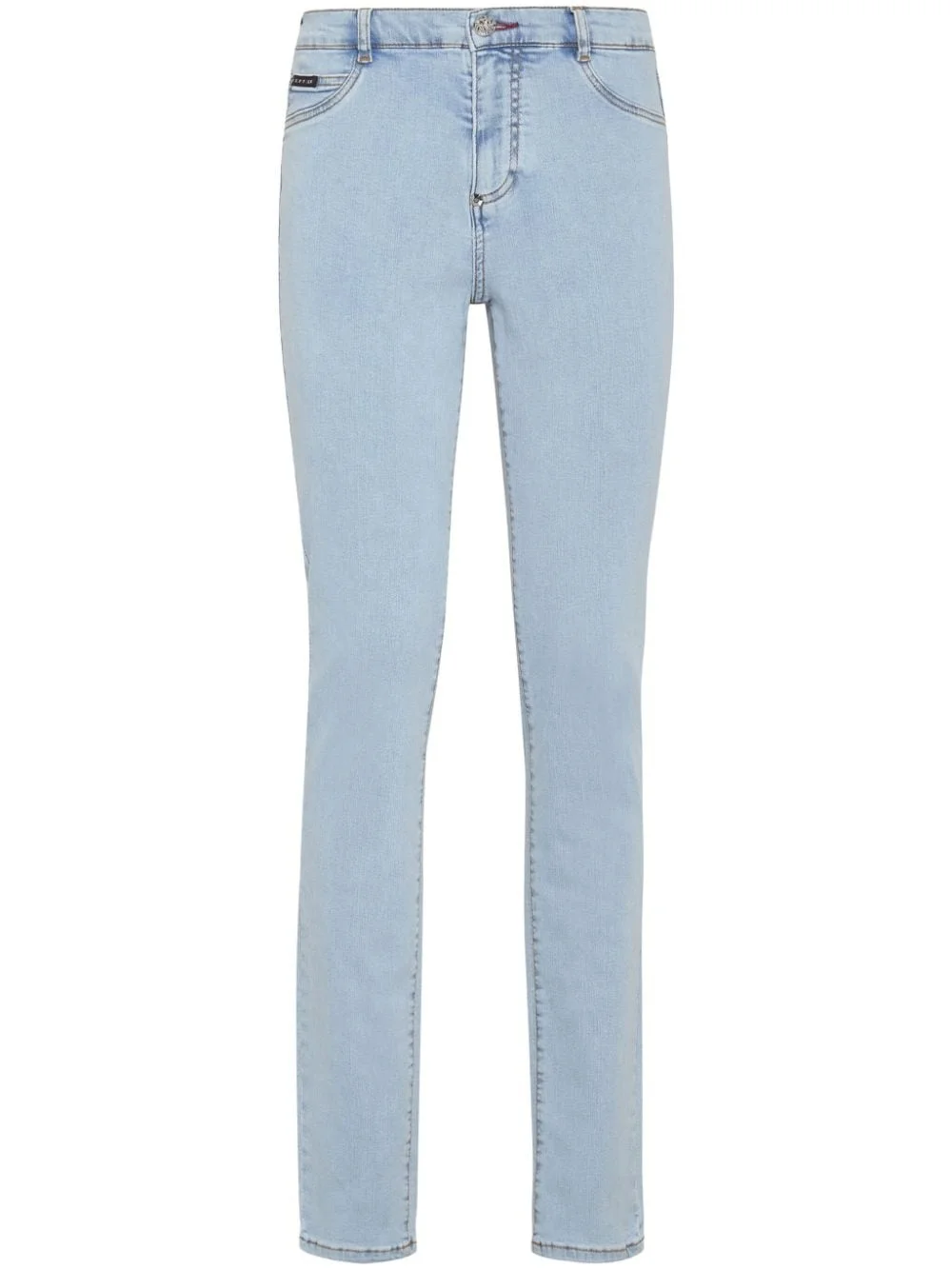 logo-plaque skinny-cut jeans Highlights - Ice blue - Cotton - Denim - Logo plaque - High-rise - Concealed fly and button fastening - Belt loops - Skinny cut - Classic five pockets Imported Composition Cotton 100% Washing instructions Read Manufacturer Guidelines