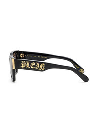 logo-plaque square-frame sunglasses Highlights - Black - Acetate - Tinted lenses - Square frame - Logo plaque at the arm - Gold-tone hardware - Straight arms - Curved tips - These glasses come with a protective case. Made in Italy Composition Acetate 100%