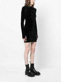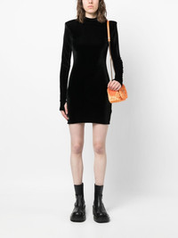 logo-plaque velvet minidress Highlights - Black - Stretch-design - Velvet effect - Silver-tone logo plaque - Mock neck - Shoulder pads - Long sleeves - Thumb slots - Bodycon design - Thigh-length Imported Composition Polyester 95%, Elastane 5% SIZE & FIT Model measurements Height 5 ft 10 in(1.79 m) Bust/Chest 32.67 in(83 cm) Hips 34.25 in(87 cm) Waist 24.4 in(62 cm) FittingInformation Designed for a close fit throughout The internal shoulder pads offer a structured shape Made from a midweight stretch fabric, this piece offers elasticity and flexibility when worn This piece fits true to size – take your usual size