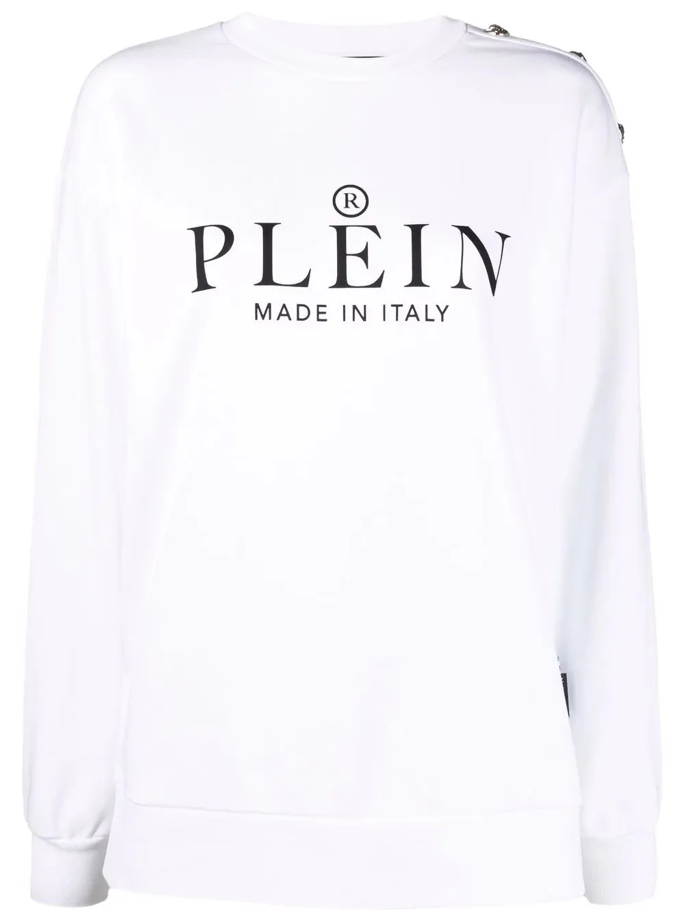 logo-print crew neck sweatshirt bright-white cotton logo print to the front logo patch to the rear crew neck long sleeves Made in Italy Composition Cotton 100% SIZE & FIT Model measurements Height 5 ft 10 in(1.79 m) Bust/Chest 33.07 in(84 cm) Hips 35.82 in(91 cm) Waist 24.01 in(61 cm) FittingInformation This piece fits true to size. We recommend you get your regular size Cut for a loose fit Made with a mid-weight fabric Washing instructions Machine Wash