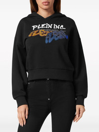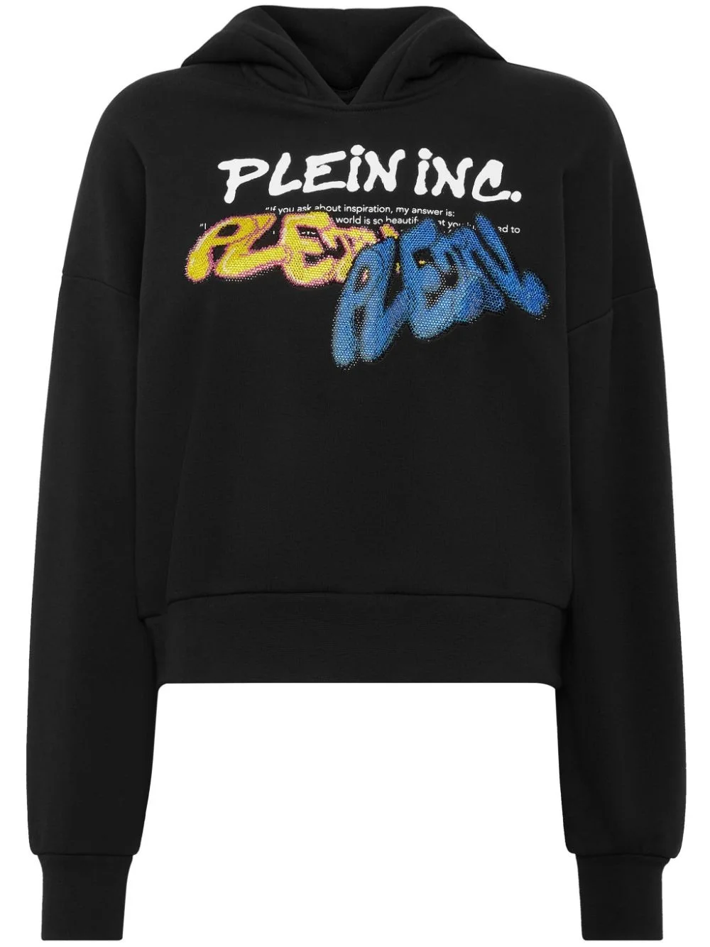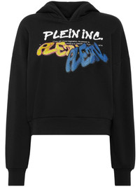 logo-print cropped hoodie Highlights - Black - Cotton blend - Logo print to the front - Graffiti print - Logo patch to the rear - Cropped - Classic hood - Long sleeves - Straight hem Imported Composition Cotton 88%, Polyester 12%