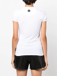 script logo crystal-embellished T-shirt optical white/black cotton crystal embellishment logo print to the front round neck long sleeves curved hem Imported Composition Cotton 100%, glass 100% SIZE & FIT Model measurements Height 5 ft 11 in(1.8 m) Bust/Chest 31.49 in(80 cm) Hips 35.43 in(90 cm) Waist 24.4 in(62 cm) FittingInformation This piece fits true to size. We recommend you get your regular size Cut for a slim fit Made with a mid-weight fabric Washing instructions Hand Wash