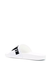 logo-print slides white logo print to the front slip-on style open toe flat rubber sole Imported Composition Lining: Rubber 100% Outer: Rubber 100% Sole: Rubber 100% SIZE & FIT Measurement HEEL 0.59 in(1.5 cm)