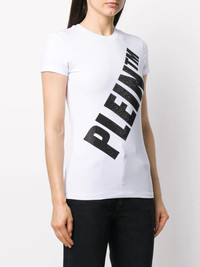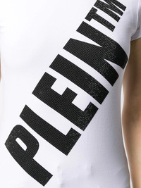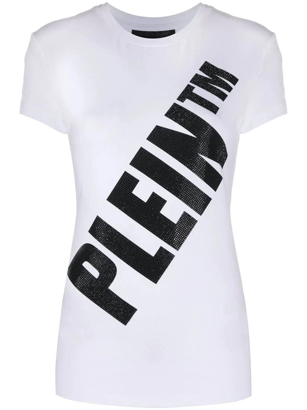 logo print T-shirt White stretch cotton blend logo print T-shirt from Philipp Plein featuring a ribbed round neck, short sleeves and a two tone design. Imported Composition Acrylonitrile Butadiene Styrene (ABS) 100%, Cotton 95%, Spandex/Elastane 5% SIZE & FIT Model measurements Height 5 ft 11 in(1.8 m) Bust/Chest 33.07 in(84 cm) Hips 37.4 in(95 cm) Waist 25.19 in(64 cm) FittingInformation Designed for a close fit throughout Made from a lightweight stretch fabric, this piece offers elasticity and flexibility when worn This piece fits true to size – take your usual size Washing instructions Hand Wash