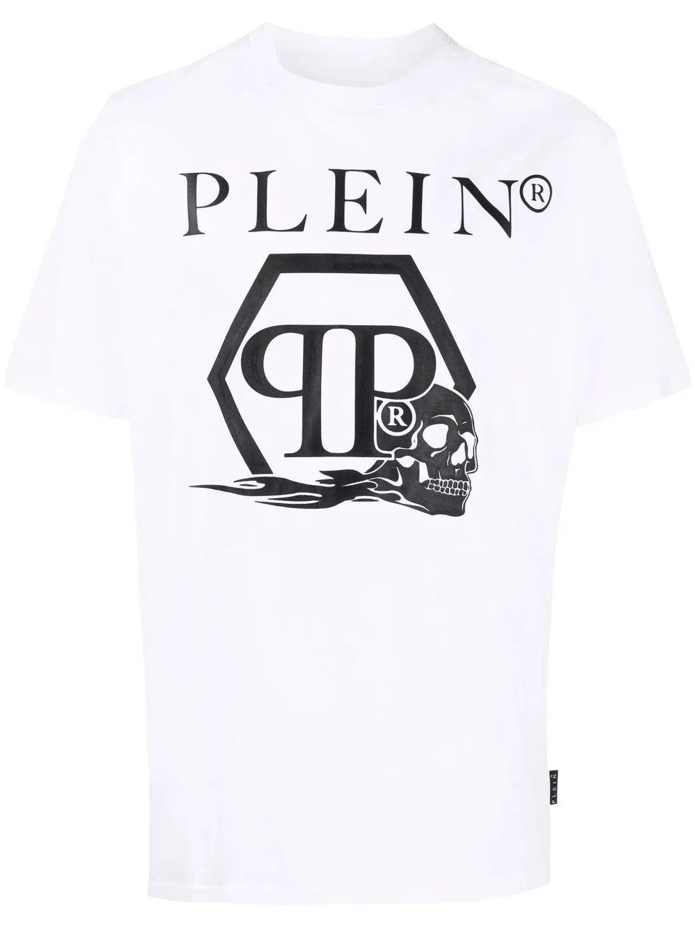 skull and logo-print T-shirt Reflecting the brand's rebellious aesthetic, Philipp Plein presents this T-shirt for SS22. Crafted from pure cotton, this T-shirt follows a classic silhouette and stands out thanks to its bold skull and logo print on the front. Highlights - White - Cotton - Round neck - Short sleeves - Straight hem - Skull print to the front - Logo print to the front - When buying this unisex item, keep in mind that it is graded in standard men's sizing. Imported Composition Cotton 100% SIZE & FIT Model measurements Height 5 ft 10 in(1.78 m) Bust/Chest 33.07 in(84 cm) Hips 36.61 in(93 cm) Waist 24.8 in(63 cm) FittingInformation This piece is unisex. Please take care when selecting your size Cut for a relaxed fit for both men and women Made with a mid-weight fabric Washing instructions Hand Wash