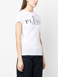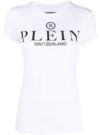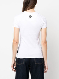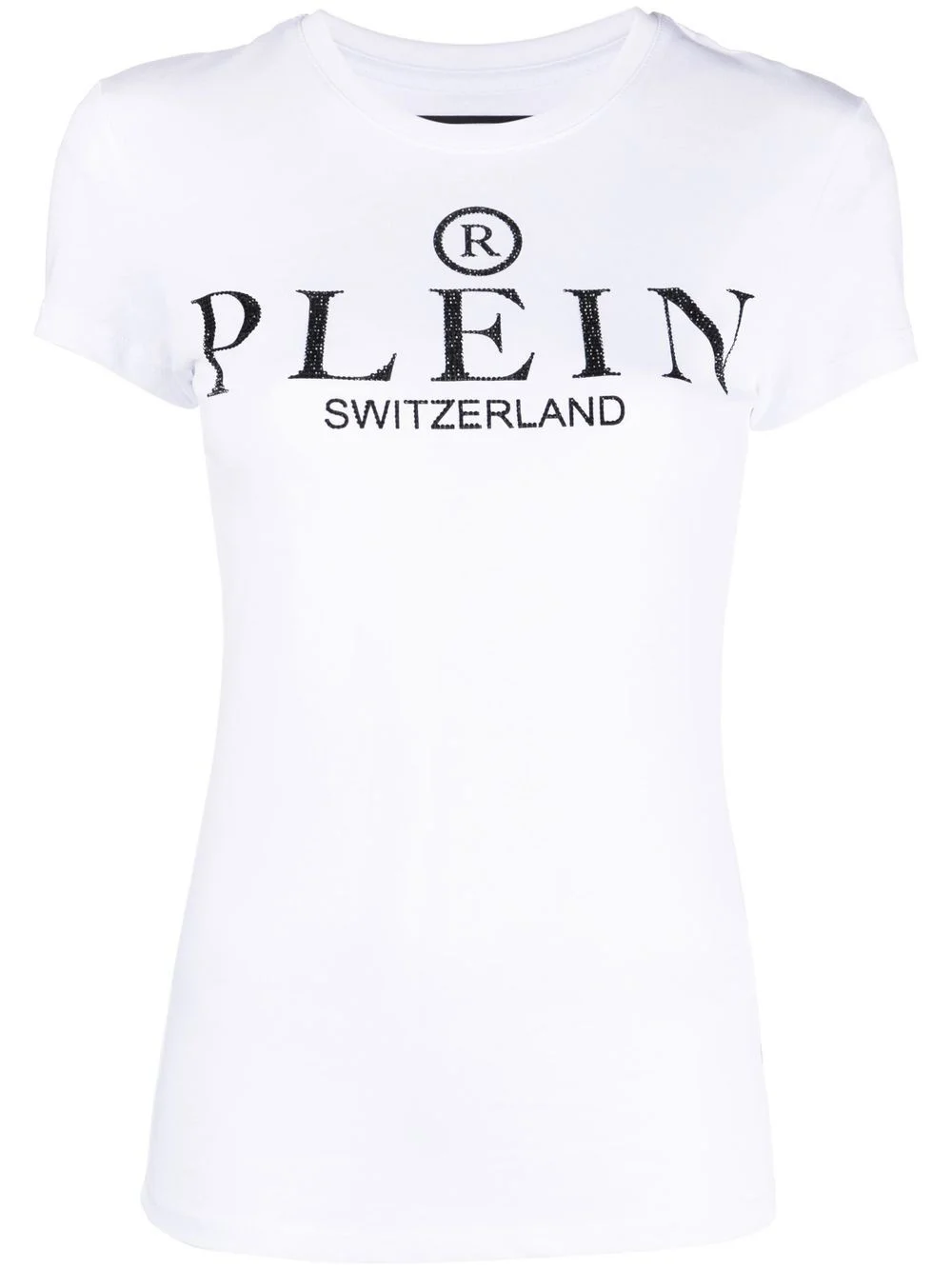 logo-print t-shirt white cotton logo print to the front glass crystal embellishment crew neck short sleeves straight hem Imported Composition glass 100%, Cotton 100% SIZE & FIT Model measurements Height 5 ft 11 in(1.8 m) Bust/Chest 31.49 in(80 cm) Hips 36.22 in(92 cm) Waist 25.59 in(65 cm) FittingInformation This piece fits true to size. We recommend you get your regular size Cut for a slim fit Made with a mid-weight fabric Washing instructions Hand Wash