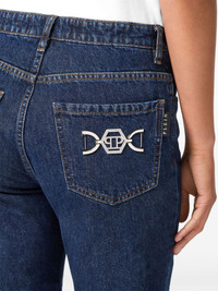 logo straight-leg jeans Highlights - Blue - Cotton blend - Denim - Front button and zip fastening - Belt loops - Classic five pockets - Logo patch to the rear Imported Composition Lining: Polyester 65%, Cotton 35% Outer: Cotton 100%, Polyester 100%, Metal 100%