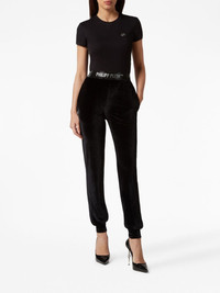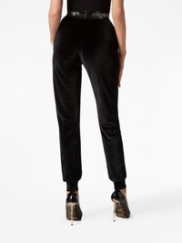 logo-waistband velvet track pants Bold logos and rock ‘n’ roll finishes are part of Philip Plein's style code. These track pants are a prime example with their crystal-embellished logo waistband and soft velvet construction. Highlights - Black - Cotton - Logo waistband - Crystal embellishment - Elasticated hem - Two side slit pockets - Slip-on style Imported Composition Cotton 100% SIZE & FIT FittingInformation Designed for a tapered fit, these trousers allow for a close fit at the waist and a loose unrestricted fit over the leg with a closer fit towards the ankle The elasticated waist allows for a comfortable fit Made from a midweight non-stretch fabric, this piece offers minimal elasticity when worn This piece fits true to size – take your usual size