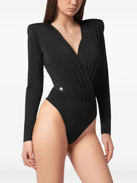 padded-shoulder bodysuit Highlights - Black - V-neck - Long sleeves - Padded shoulders - Wrap effect - Just a reminder that this piece must be tried on over your own garments. Imported Composition Polyester 95%, Spandex/Elastane 5% Washing instructions Read Manufacturer Guidelines