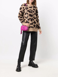 long-sleeved lurex leopard jumper brown/black wool-blend knitted construction ribbed detailing leopard print lurex detailing intarsia-knit logo round neck long sleeves Made in Italy Composition Wool 85%, Polyamide 8%, Metallized Polyester 7% SIZE & FIT Model measurements Height 5 ft 10 in(1.78 m) Bust/Chest 33.46 in(85 cm) Hips 36.22 in(92 cm) Waist 23.22 in(59 cm) Washing instructions Hand Wash
