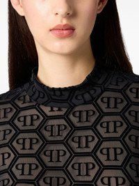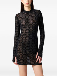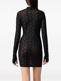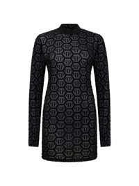 long-sleeved mini dress Highlights - Black - All-over monogram pattern - Long sleeves - High neck Imported Composition Polyester 66%, Elastane 33%, glass 1% Washing instructions Read Manufacturer Guidelines
