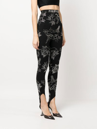 Love-print stirrup leggings black/silver-tone cotton blend all-over graphic print high waist elasticated waistband stirrup cuffs Imported Composition Cotton 75%, Polyester 20%, Elastane 5% SIZE & FIT Model measurements Height 5 ft 11 in(1.8 m) Bust/Chest 31.49 in(80 cm) Hips 36.22 in(92 cm) Waist 25.59 in(65 cm) FittingInformation This piece fits true to size. We recommend you get your regular size Cut for a close fit Made with a mid-weight stretch fabric Washing instructions Hand Wash
