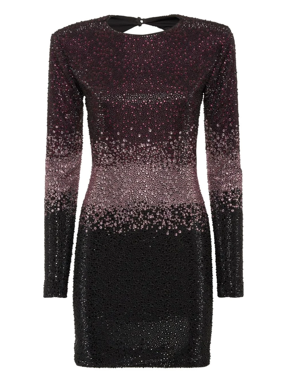 low-cut strass mini dress Highlights - Burgundy and black - Glass embellishment - Long sleeves - Low-cut back - Degrade effect Imported Composition glass 100%, Polyester 95%, Spandex/Elastane 5% Washing instructions Read Manufacturer Guidelines