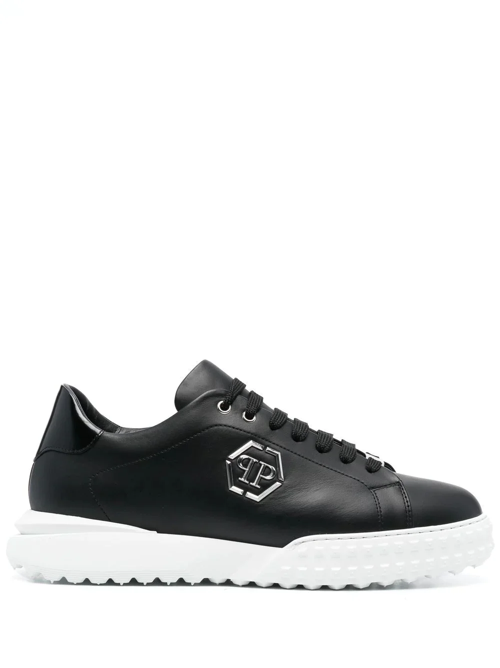 low-top leather sneakers low-top leather sneakers from PHILIPP PLEIN featuring black, leather, logo plaque, front lace-up fastening, round toe and flat rubber sole. Made in Italy Composition Leather 100% SIZE & FIT Measurement HEEL 1.57 in(4 cm) Sole height 0.98 in(2.5 cm)