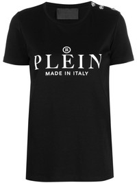 logo-print T-shirt black stretch cotton decorative button detailing FF-logo print round neck short sleeves straight hem Made in Italy Composition Cotton 95%, Spandex/Elastane 5% SIZE & FIT Model measurements Height 5 ft 10 in(1.79 m) Bust/Chest 32.67 in(83 cm) Hips 35.03 in(89 cm) Waist 24.8 in(63 cm) FittingInformation Designed for a slim fit that sits just away from the body offering a close yet comfortable fit Made from a lightweight stretch fabric, this piece offers elasticity and flexibility when worn This piece fits true to size – take your usual size Washing instructions Hand Wash