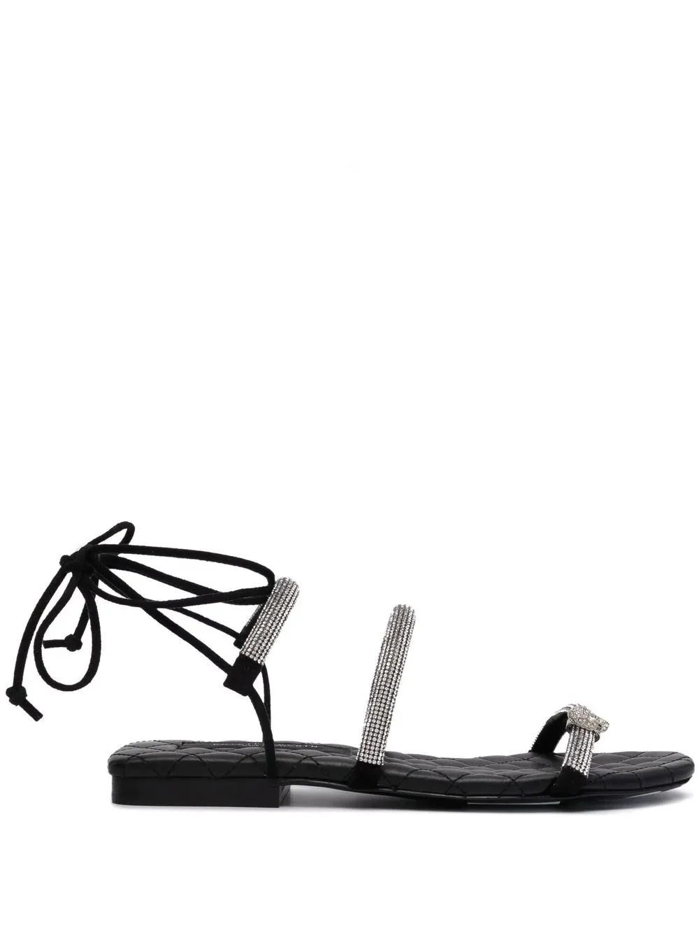 maltese flat crystal sandals black leather strappy design open toe quilted sole tie-fastening ankle strap Made in Italy Composition Sole: Leather 100% Outer: glass 100%, Calf Leather 100% Lining: Leather 100% SIZE & FIT Measurement HEEL 0.78 in(2 cm) Sole height 0.39 in(1 cm)