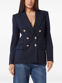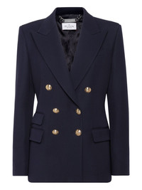 Marine double-breasted blazer Highlights - Navy blue - Double-breasted button fastening - Graphic print to the rear - Long sleeves Made in Italy Composition Outer: glass 100%, Polyester 55%, Wool 45% Lining: Viscose 51%, Acetate 49%