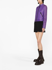 matelasse leather biker jacket Philipp Plein’s edgy aesthetic is exemplified by this biker jacket. Rendered in a purple hue, it’s crafted from supple leather enhanced with matelasse quilting. Highlights - Purple - Leather - Matelasse effect - Front press-stud fastening - Front zip fastening - Two side zip-fastening pockets - Long sleeves - Cropped Made in Italy Composition Lining: Viscose 100% SIZE & FIT Model measurements Height 5 ft 10 in(1.78 m) Bust/Chest 29.92 in(76 cm) Hips 34.64 in(88 cm) Waist 23.62 in(60 cm) FittingInformation Designed for a slim fit that sits just away from the body offering a close yet comfortable fit Soft leather has a supple and smooth construction offering some flexibility This piece fits true to size – take your usual size