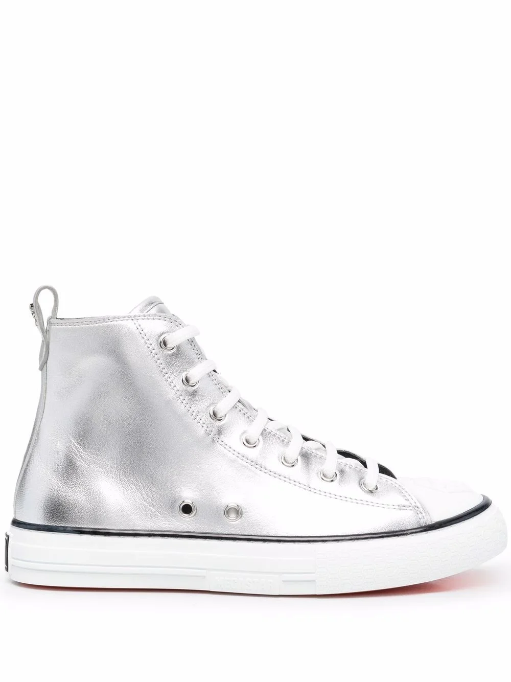 metallic-finish high-top sneakers Highlights - Silver - Leather - Metallic effect - Front lace-up fastening - Round toe - Flat rubber sole Made in Italy Composition Leather 100% SIZE & FIT Measurement HEEL 0.98 in(2.5 cm) HEIGHT 3.93 in(10 cm) Sole height 0.78 in(2 cm)