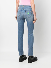 mid-rise slim-cut jeans blue cotton blend denim mid-rise front button and zip fastening belt loops classic five pockets logo plaque Made in Italy Composition Outer: Cotton 93%, Polyester 5%, Spandex/Elastane 2% Lining: Polyester 65%, Cotton 35% SIZE & FIT Model measurements Height 5 ft 10 in(1.78 m) Bust/Chest 31.49 in(80 cm) Hips 36.22 in(92 cm) Waist 25.59 in(65 cm) FittingInformation This piece fits true to size. We recommend you get your regular size Cut for a close fit Made with a mid-weight stretch fabric Washing instructions Machine Wash