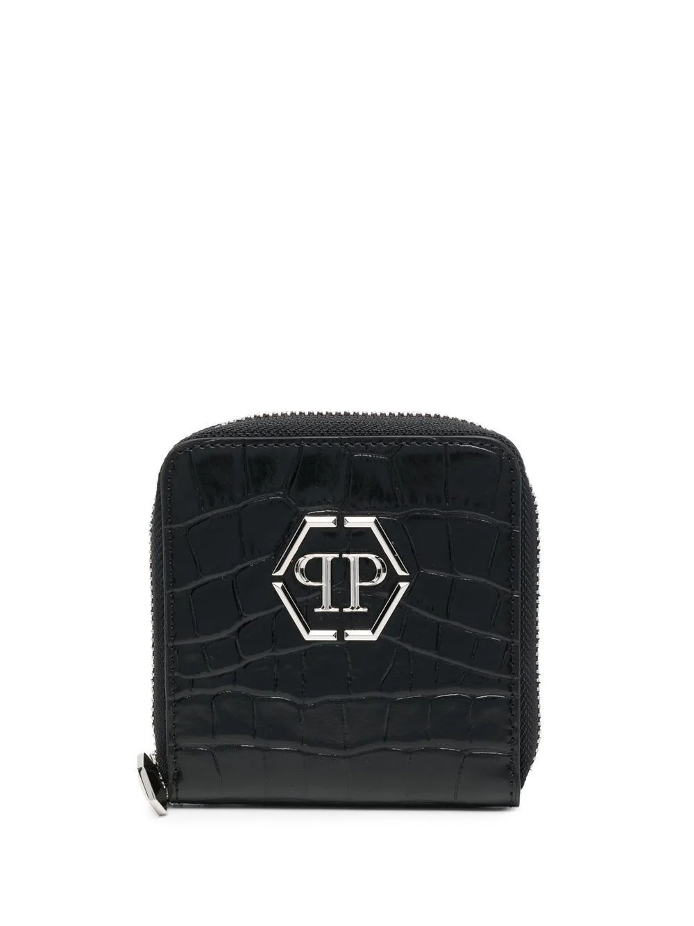 mini crocodile-embossed leather wallet black calf leather embossed crocodile effect silver-tone logo plaque all-around zip fastening internal logo stamp internal card slots Made in Italy Composition Outer: Calf Leather 100% SIZE & FIT Measurement LENGTH 4.33 in(11 cm) WIDTH 3.93 in(10 cm)