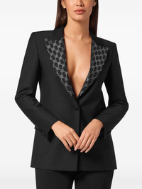 monogram blazer Highlights - Black - Monogram print - Front button fastening - Peak lapels - Plunging v-neck - Long sleeves - Buttoned cuffs - Straight hem - Rear slit Made in Italy Composition Outer: glass 100%, Polyester 53%, Virgin Wool 43%, Elastane 4% Lining: Polyester 100%