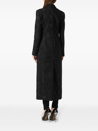 monogram crystal double-breasted coat Highlights - Black - Crystal embellishment - Monogram pattern - Double-breasted button fastening - Peak lapels - Long sleeves - Two front flap pockets - American rear vent - Straight hem Made in Italy Composition Outer: Cotton 100%, glass 100%, Virgin Wool 70%, Polyamide 20%, Cashmere 10% Lining: Viscose 51%, Acetate 49%