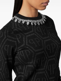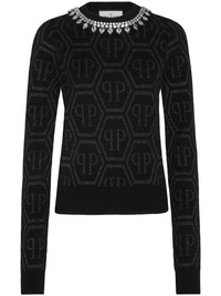 monogram crystal-embellished jumper Highlights - Black - Cotton blend - Monogram pattern - Fine knit - Crew neck - Crystal embellishment - Long sleeves - Ribbed trims - Straight hem Made in Italy Composition Cotton 60%, Acetate 31%, Metallized Polyester 5%, Nylon 4%