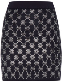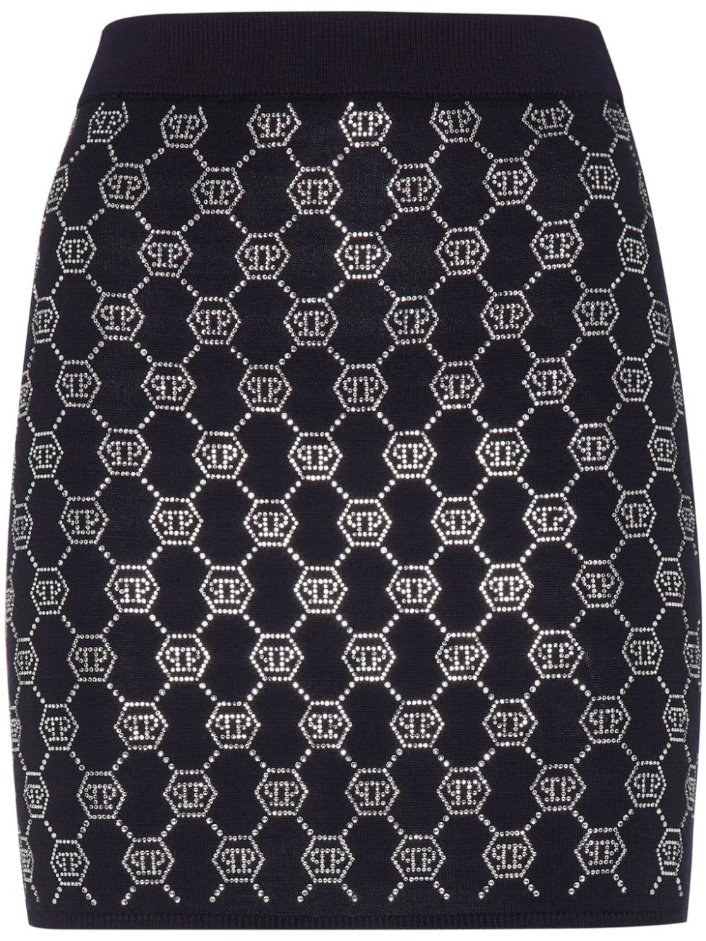 monogram-embellished knitted mini skirt Highlights - Black - Wool - Fine knit - Monogram pattern - Rhinestone embellishment - Elasticated waistband - High-waisted - Thigh-length - Straight hem Made in Italy Composition Wool 100%