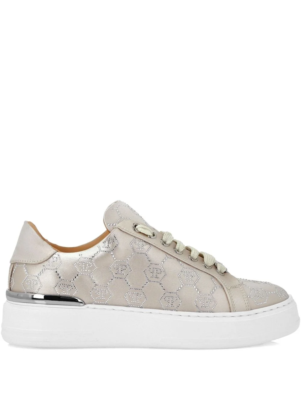 monogram-embellished sneakers Highlights - Light beige - Front lace-up fastening - Crystal embellishment - Decorative plaque - Branded insole Made in Italy Composition Lining: Recycled ABS 100% Outer: Polyester 100%, Bullhide Leather 100% Sole: Rubber 100%