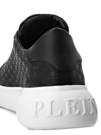 monogram-embossed leather sneakers Highlights - Black - Leather upper - Monogram embossed-pattern - Lace-up fastening - Thick rubber-sole - Embossed lettering on the heel Made in Italy Composition Sole: Synthetic Rubber 100% Lining: Calf Leather 100% Outer: Calf Leather 100%