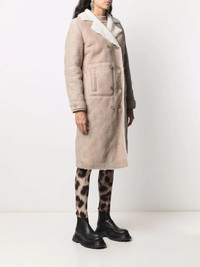 monogram-embossed long shearling coat cream leather shearling lining embossed monogram pattern double-breasted button fastening long sleeves Imported Composition Lining: Sheep Skin/Shearling 100% Outer: Calf Leather 100% SIZE & FIT Model measurements Height 5 ft 10 in(1.79 m) Bust/Chest 33.07 in(84 cm) Hips 35.82 in(91 cm) Waist 24.01 in(61 cm) FittingInformation This piece fits true to size. We recommend you get your regular size Cut for a loose fit Made with a mid-weight non-stretch fabric Washing instructions Specialist Cleaning