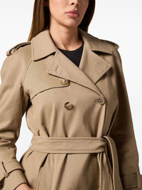 monogram long trench coat Highlights - Beige - Cotton blend - Applique logo - Monogram pattern - Notched lapels - Double-breasted button fastening - Belted waist - Two side button-fastening pockets - Long sleeves - Straight hem - Central rear vent Made in Italy Composition Cotton 98%, Spandex/Elastane 2%