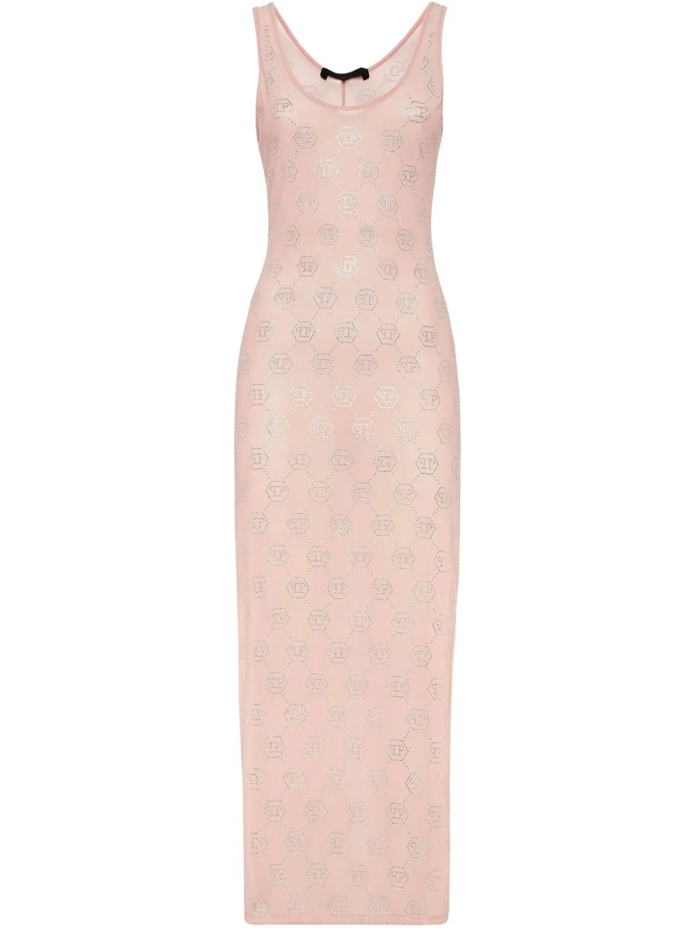 monogram midi dress Highlights - Pink - Monogram pattern - Rhinestone embellishment - Scoop neck - Sleeveless Imported Composition glass 100%, Polyester 66%, Cotton 34%