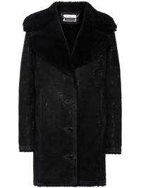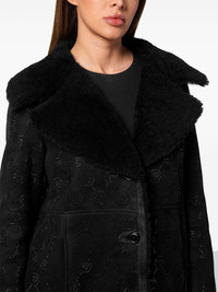monogram-pattern coat Highlights - Black - Sheepskin - Shearling - Monogram pattern - Front button fastening - Wide notch lapels - Drop shoulder - Long sleeves - Slip pockets to the sides - Straight hem Imported Composition Sheep Skin/Shearling 100%