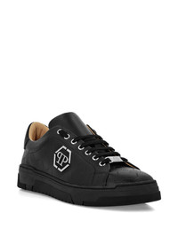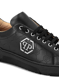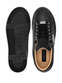 monogram-plaque sneakers Highlights - Black - Front lace-up fastening - Flat rubber sole - Perforated logo detail - Branded insole Made in Italy Composition Outer: Calf Leather 100% Sole: Synthetic Rubber 100% Lining: Calf Leather 100%