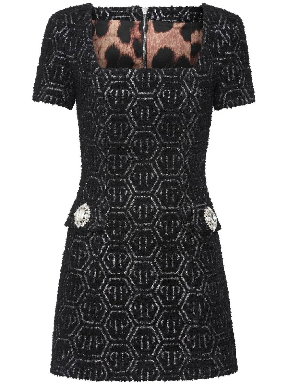 monogram tweed dress Highlights - Black - Tweed - Rear zip fastening - Monogram pattern - Square neck - Short sleeves - Faux pocket detail Made in Italy Composition Outer: Polyester 31%, Polyamide 31%, Acrylic 26%, Virgin Wool 12% Lining: Polyester 100% Washing instructions Read Manufacturer Guidelines