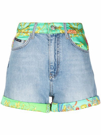 New Baroque-print panelled denim shorts