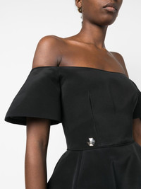 off-shoulder silk mini dress black silk off-shoulder silver-tone logo plaque flute sleeves flared skirt concealed rear zip fastening straight hem thigh-high Imported Composition Outer: Silk 100% Lining: Polyester 100% SIZE & FIT Model measurements Height 5 ft 10 in(1.78 m) Bust/Chest 31.49 in(80 cm) Hips 37 in(94 cm) Waist 23.62 in(60 cm) FittingInformation This piece fits true to size. We recommend you get your regular size Designed for a close fit at the bust and waist, but loose at the hip Made with a mid-weight fabric Washing instructions Dry Clean Only