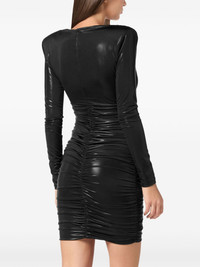 LS Shiny mini dress Highlights - Black - Stretch-design - Plunging v-neck - Ruched bodice - Shoulder pads - Long sleeves - Straight hem Imported Composition Polyester 95%, Spandex/Elastane 5%